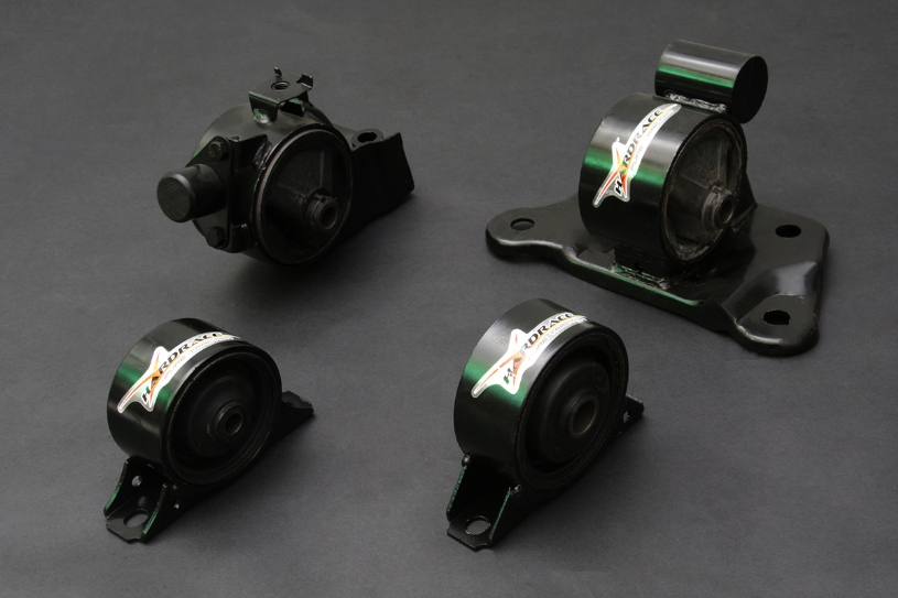 Reinforced engine mount made by hardness rubber create more strength than OE rubber mounts, reduce engine move significantly, and provide the maximum output under engine acceleration. . Offers a more direct connection between the Drive-train and Chassis . Increasing the life span . Helps to put power down to the wheels . Direct bolt-on with OEM components . Increased stability during cornering and acceleration
