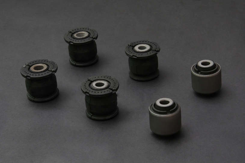Harden rubber bushing made with high strength and anti-crack rubber material, solid steering response and driving suspension feel, resist side inclined while cornering at high speed maneuvers . Reduces vibration . Provides stability . Increase steering response . OEM direct replacement . Regular greasing not required . No noise or squeaks