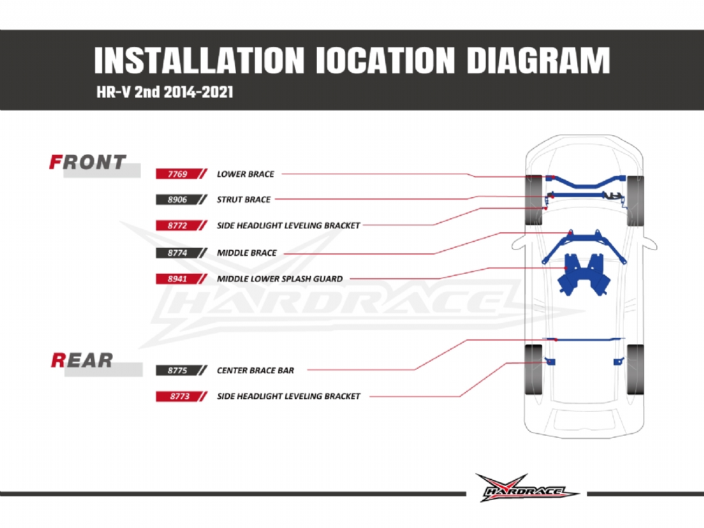 REAR CENTER BRACE BAR made of superior quality steel, provides more strength. The brace is designed to improve handling and chassis rigidity. . Reduce the flex of the vehicle chassis . Improving the stiffness ‧ Easy bolt on installation