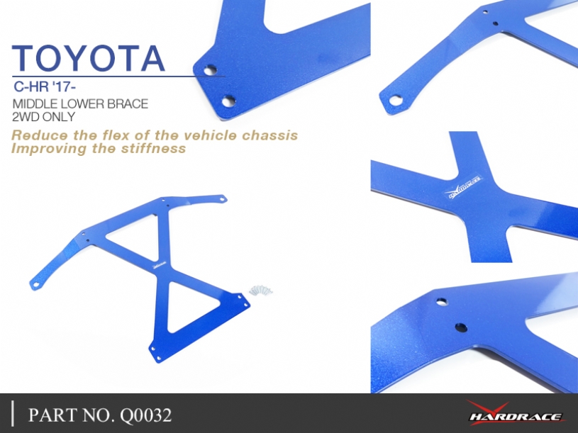 HARDRACE Middle Lower Structure Brace, made of unique high density steel, provide excellent stability, reinforced body structure . Easy to install . Increases chassis strength & handling . Direct bolt-on installation; No modification needed