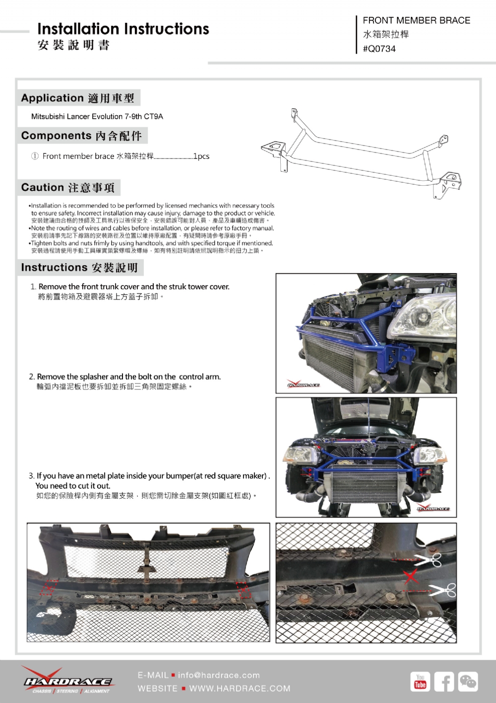 HARDRACE Front Member Brace are designed to stiffen up the chassis and reduce vehicle chassis flex. This will increase the rigidity of your car during high speed driving and hard cornering. This is why HARDRACE Front Member Brace can maximizes the performance of the suspension and brings better handling feeling and quicker response.