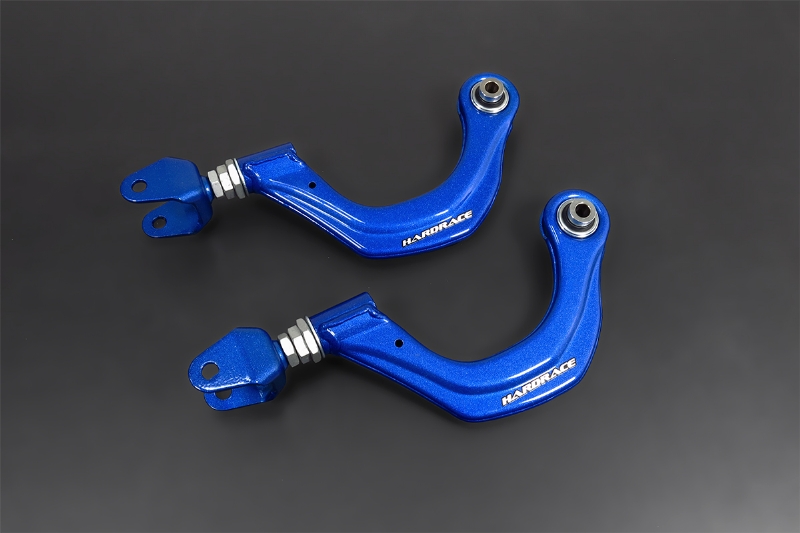 The camber kit allows fine adjustments to the front end camber setting of the vehicle. It can either help maximize wheel contact patch to improve cornering grip or get your car back to original alignment specs after lowering. The arms are made of high tensile steel alloys to offer greatest strength and durability. With premium quality harden rubber bushings equipped, they also provide much more precise and solid handling response over the factory components.