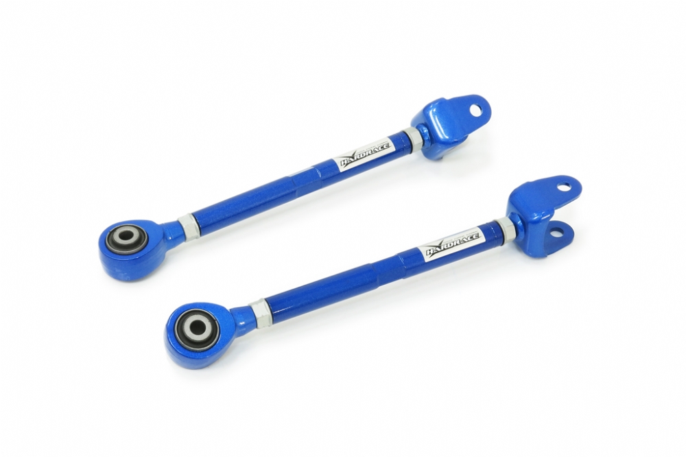 The adjustable arms allow fine adjustments to the rear end alignment setting of the vehicle. It can either help achieve desired handling characteristic or get your car back to original alignment specs after lowering. The arms are made of high-strength steel alloys to offer high durability and strength. The premium quality harden bushings equipped also provide more precise and solid handling response over the factory components.