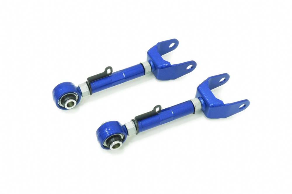 The camber kit allows fine adjustments to the rear end camber setting of the vehicle. It can either help maximize wheel contact patch to improve cornering grip or get your car back to original alignment specs after lowering to prevent uneven tyre wear. The arms are made of high tensile steel alloy tubes to offer greatest strength and durability. The premium quality pillow ball bushings equipped also provide much more precise and solid handling response over the factory components.