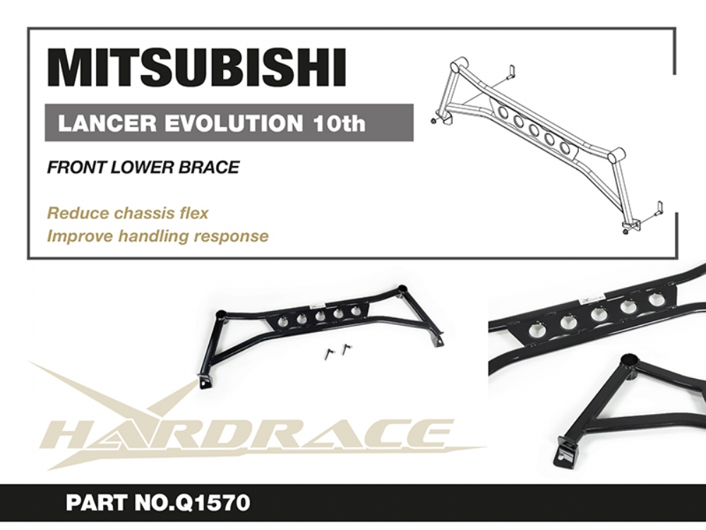 The front lower brace features ED coated and painted high-strength steel alloy bars. By connecting the structural points of the chassis, the brace capably increase chassis rigidity to reduce flex and twisting under high-speed driving and cornering, providing a more precise handling response and solid chassis feedback.