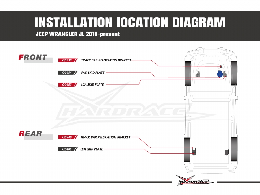 Hardrace rear LCA skid plate offers ultimate underbody protection to your 4x4 vehicle. The shields are constructed from high strength steel with ED coating to provide superior strength and durability, preventing damages to the lower control arm mounts while off-roading. The shields bolt into existing factory bolt holes and there is no cutting or welding required for installation. ● Protection from off-road obstacles ● 4.5mm thick high strength steel construction