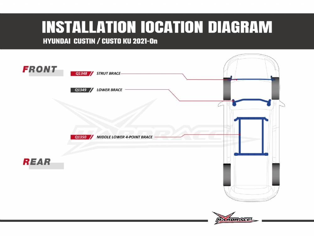 Hardrace is proud to announce the new front lower brace for Custin/Custo. This brace will reduce vehicle chassis flex and deflection to increase the rigidity of your car under high speed driving and hard cornering, resulting in better and quicker handling response.