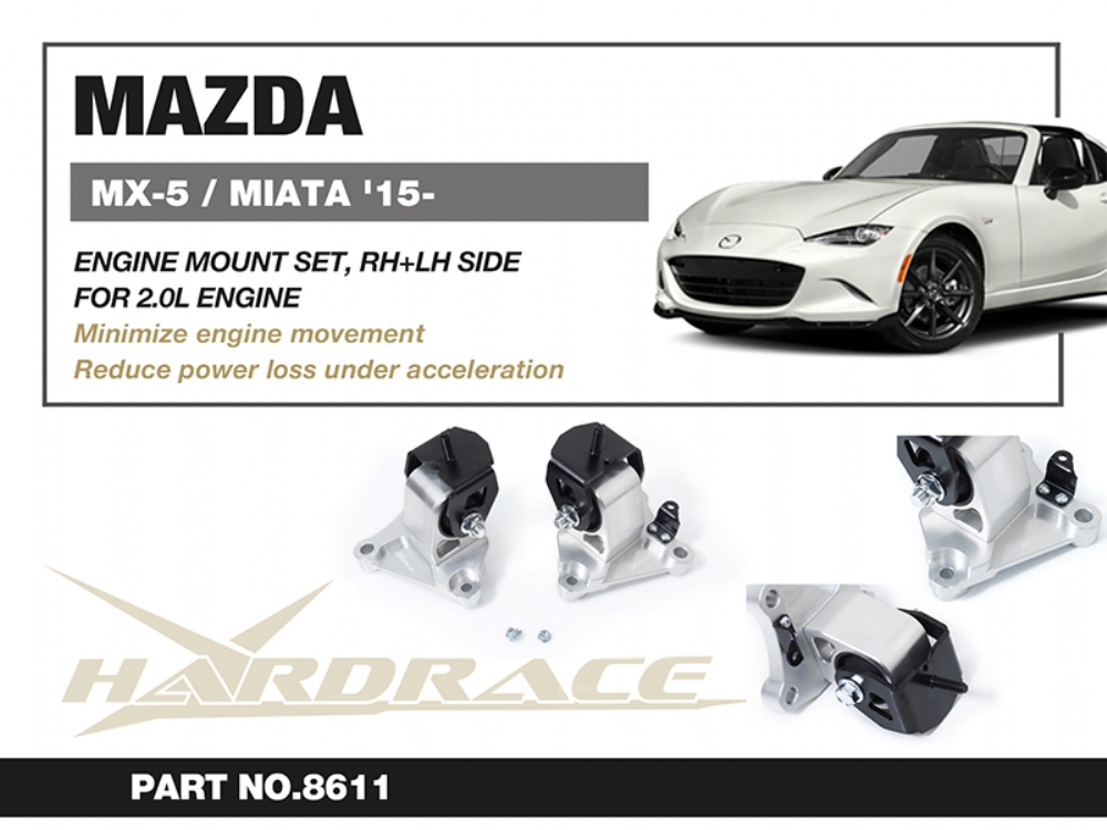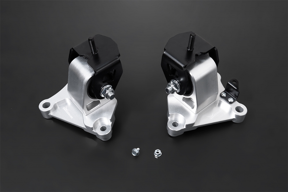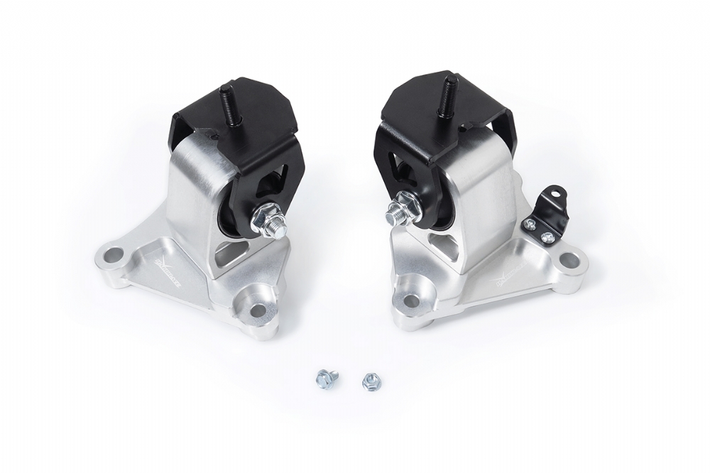 The reinforced engine mounts are made by solid hardnen rubber bushings and CNC machined aluminum alloy bodies. They provides better support and more direct connection between the drivetrain and chassis over the OE mounts. With reduced engine movement and improved stability, the driver can exprience significant less power loss under acceleration, greater shifting and handling response.
