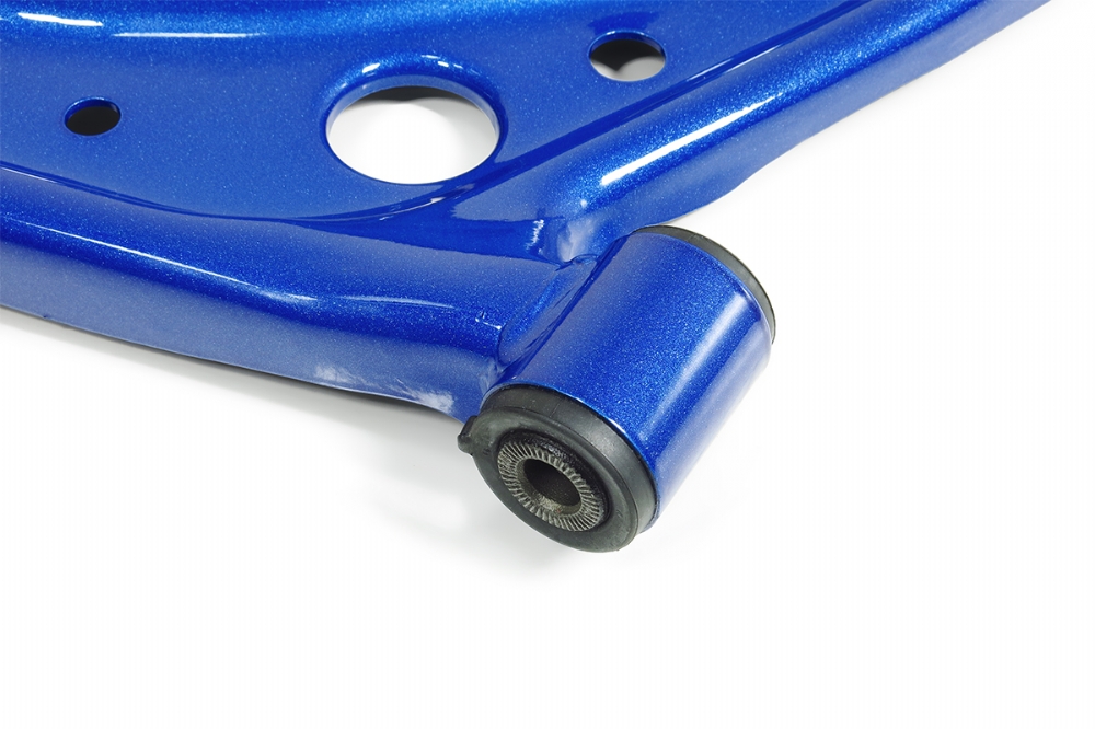 The front lower control arms feature OEM stamped steel design with additional reinforcement plates to effectively improve structural rigidity. The surface is protected by ED coating and painting, ensuring excellent resistance to rust and corrosion. Equipped with high-quality, hardened rubber bushings, these control arms deliver a more precise handling response and a more solid chassis feedback compared to the OEM components.