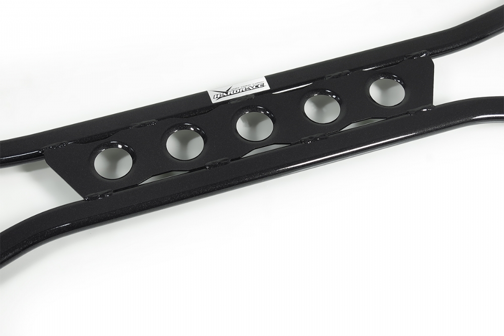 The front lower brace features ED coated and painted high-strength steel alloy bars. By connecting the structural points of the chassis, the brace capably increase chassis rigidity to reduce flex and twisting under high-speed driving and cornering, providing a more precise handling response and solid chassis feedback.