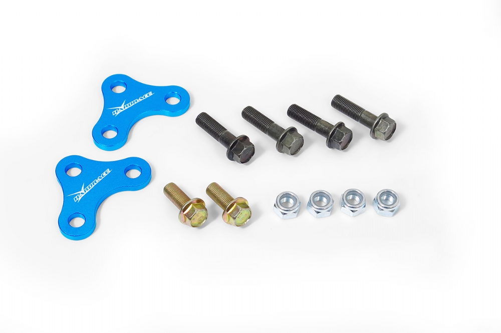 Hardrace geometry correction spacers will fix control arm geometry of lowered cars, putting the control arms back to stock position to restore handling performance, meanwhile keeping the bushings from constant twists and maintaining proper ball joint operating angle for better lifespan. The spacers are made from high strength CNC machined aluminum alloy with anodized surface to offer highest durability, sustain heavy loads and yet remain light-weight.